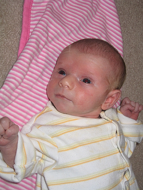 Looking to her right.