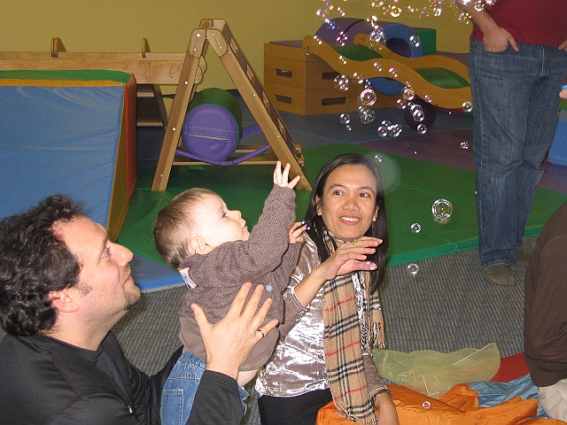 Olivia catching bubbles.
