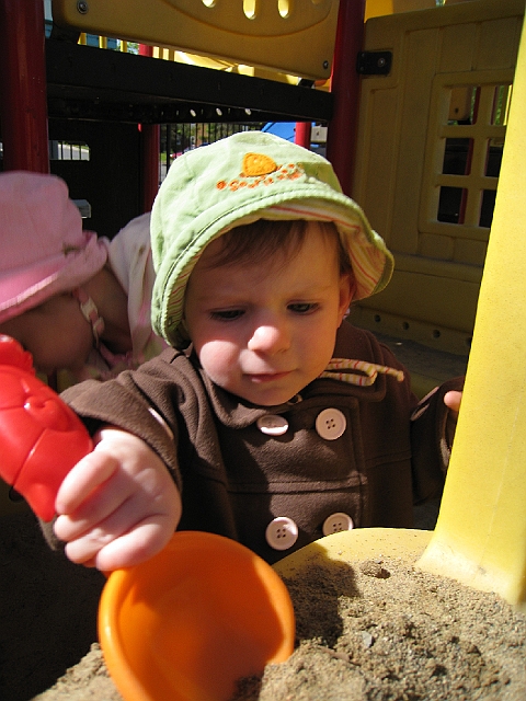 Olivia digging in the sand.