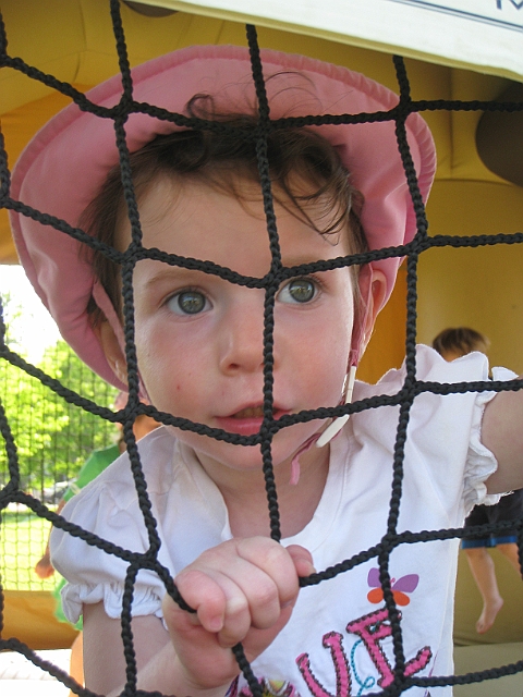Olivia behind the mesh.
